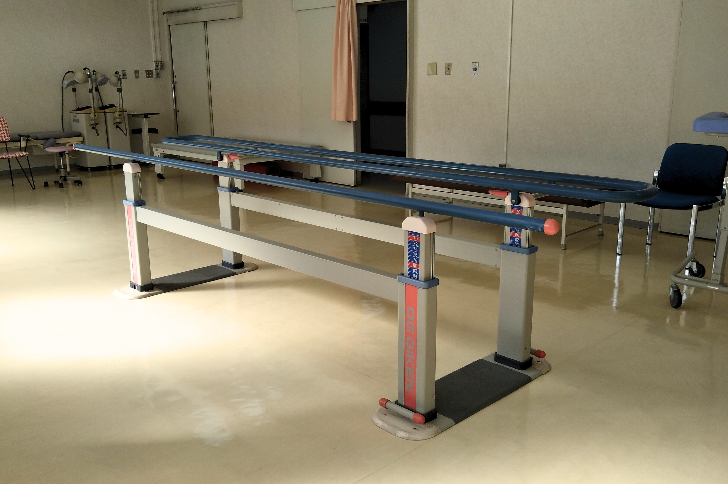 高さだけでなく、横幅の調整も可能な昇降式平行棒です。患者様の身長や体型にあった適切な訓練が行えます。