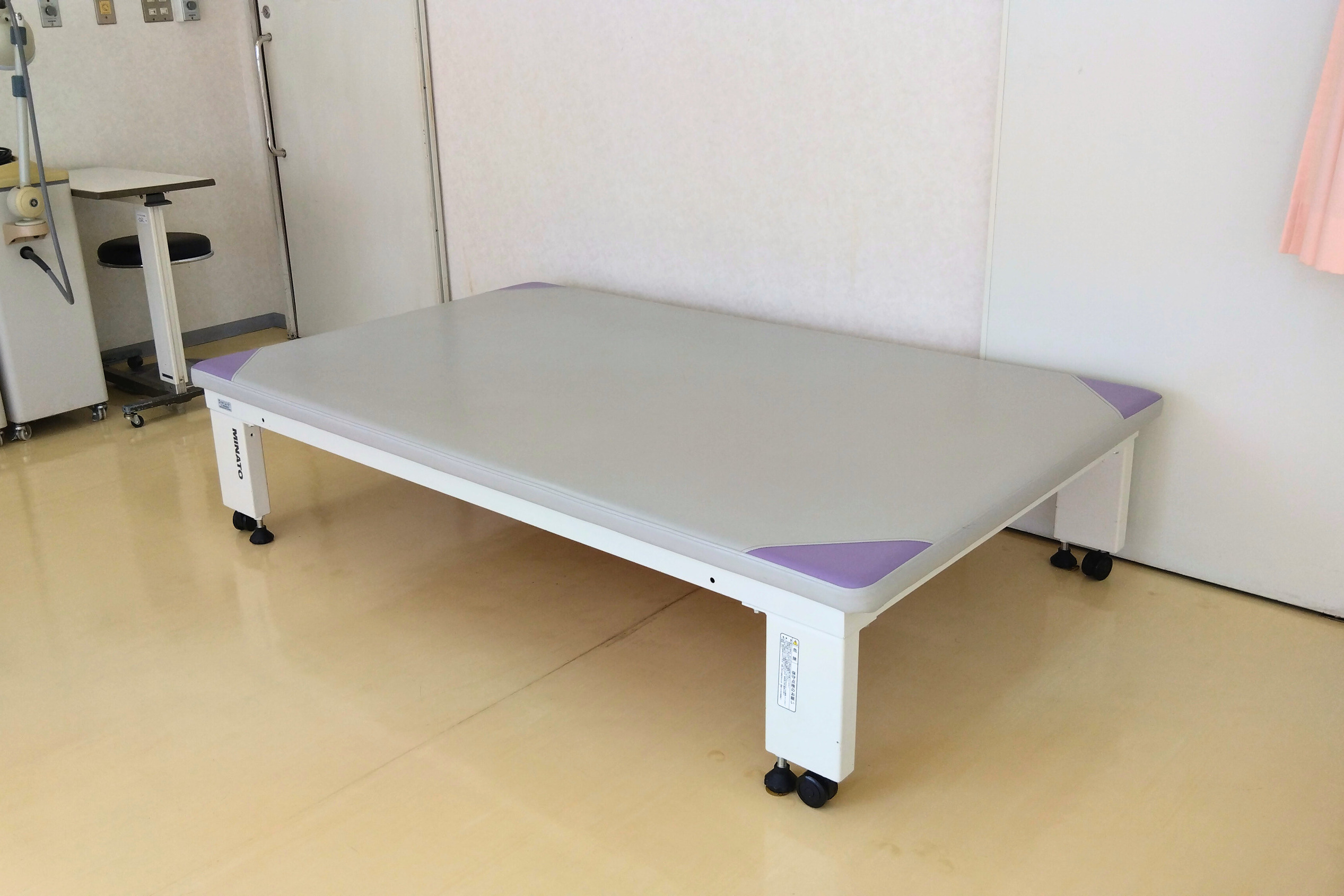 大型の訓練用ベッドです。幅が広いため、寝返り練習や起き上がり練習などダイナミックな運動が可能です。