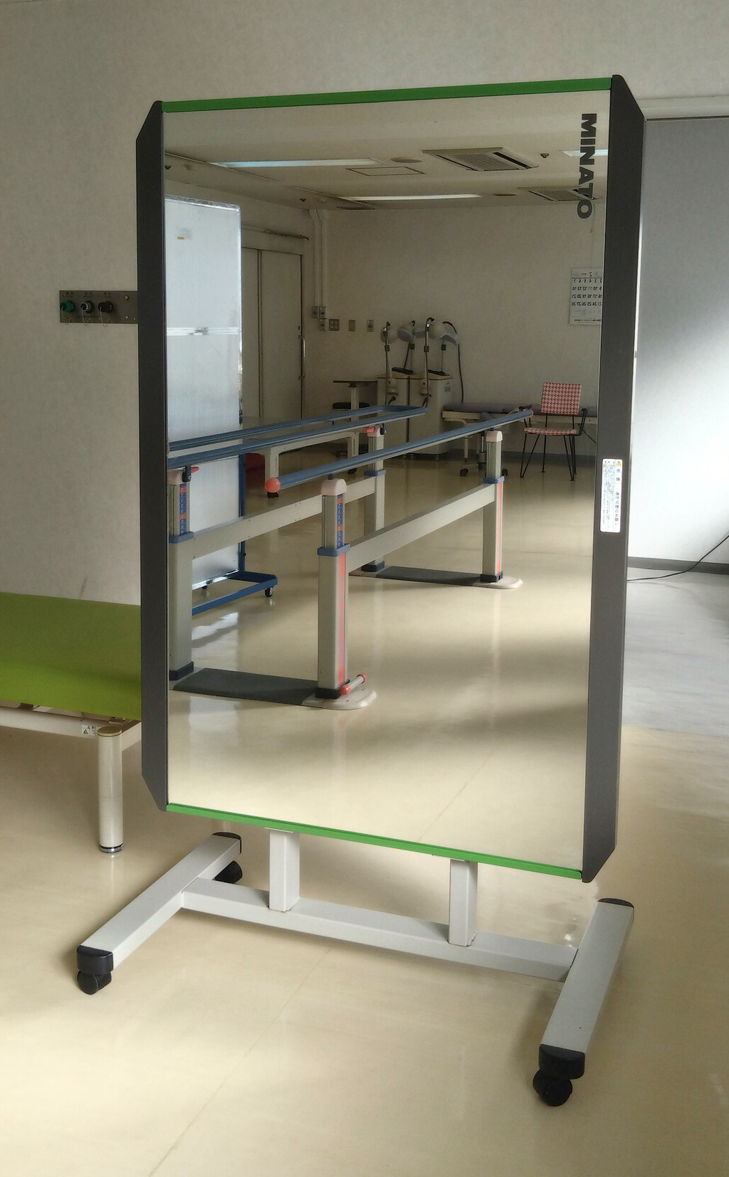 全身の姿が写り、立っている姿(立位)や座っている姿(坐位)の姿勢矯正、バランス訓練(立ち直り訓練等)が行えます。