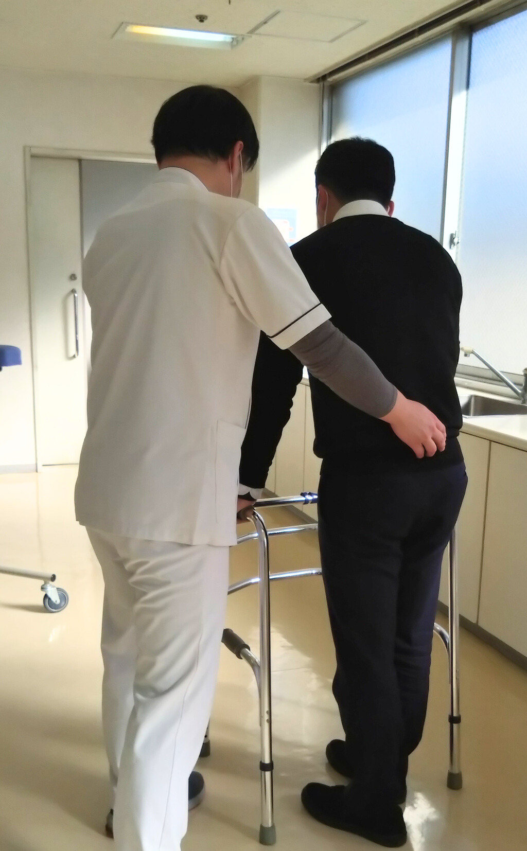 脳梗塞、頭部外傷などで麻痺や言語障害が残った患者様に対して、機能回復と日常生活動作(ADL)の自立社会復帰を目指す訓練です。